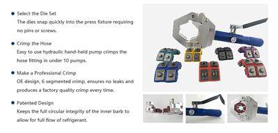 Hydraulic A/C Hose Crimper kit is applicable for beadlocking fitting.The tool includes seven
